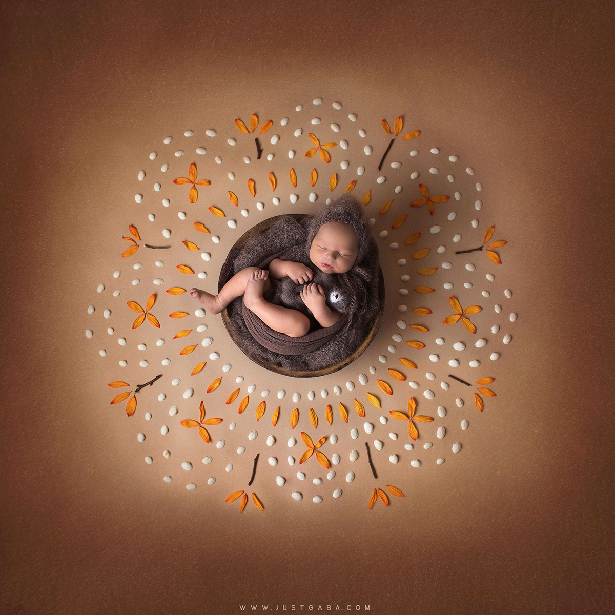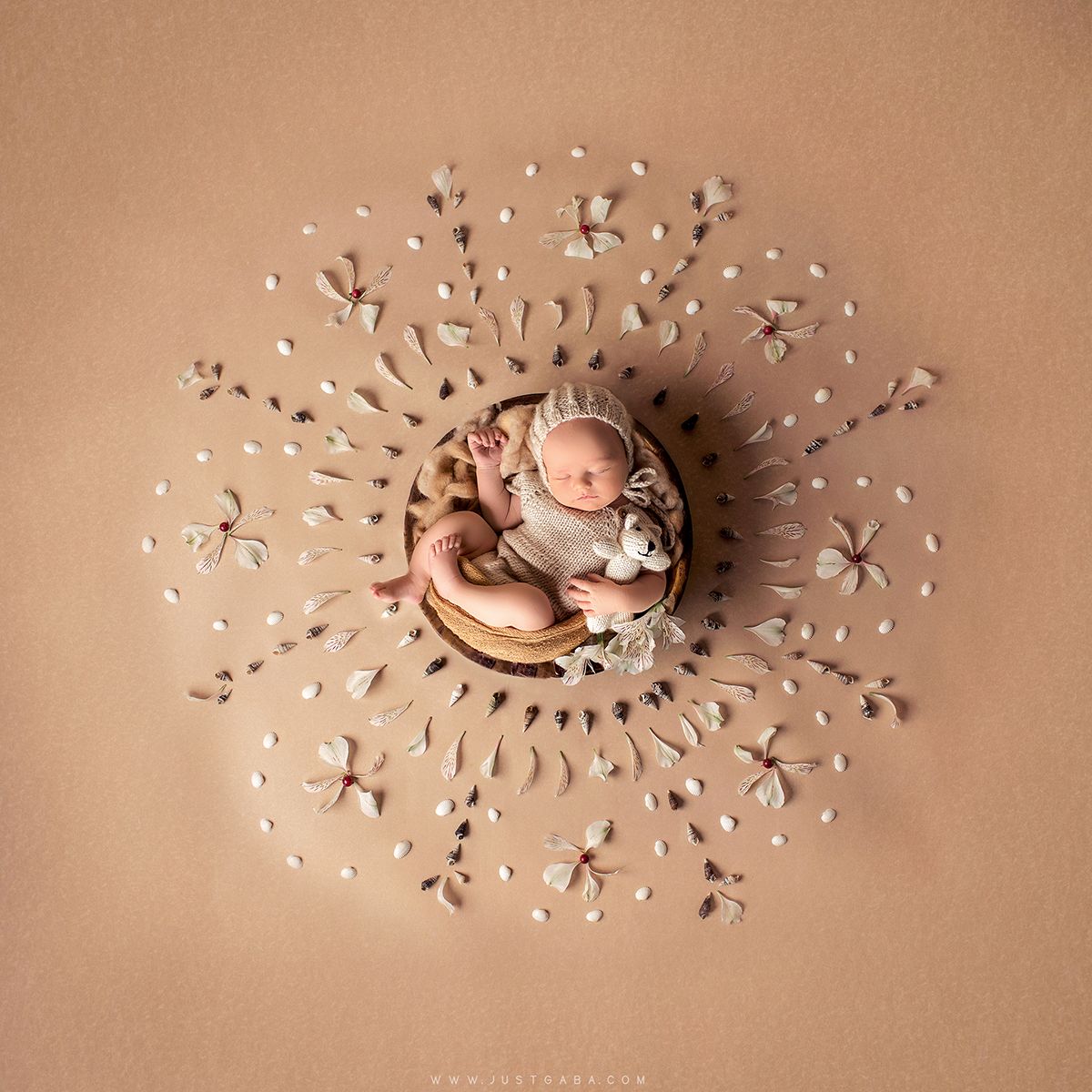 Tema gimė prieš kelerius metus, kai pradėjau fotografuoti kūdikius ir pasijaučiau drąsiau, ne tik kurdama darbus pagal nustatytas taisykles, bet ir bandydama atrasti save. Visada ieškojau kitokio priėjimo prie man žinomų dalykų. Iš pradžių atrodė neįmanoma visko sujungti į vieną naujagimio fotosesiją, tačiau palaipsniui viską susidėliodavau taip, kad mano ‘mandalos’ įgavo pavidalą, ir aš tiesiog įsimylėjau jų fotografavimą. Man mandala nėra tik apskritimas ar gyvenimo visuma. Tai nėra budistinis suvokimas, viskas truputį kitaip, aš tai suvokiu savaip. Ši sfera labai plati, tačiau mano akimis – labiau dvasinis dalykas. Nauja gyvybė viską ir sujungia. Mažas begimstantis vaikelis atsineša tyrą sielą ir dvasią į šį naują pasaulį.
